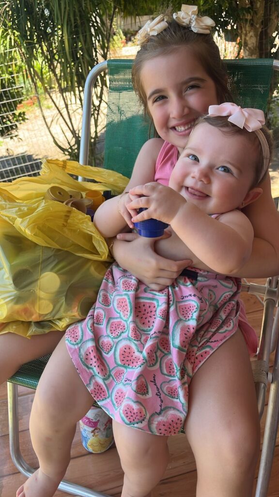 Manu e Malu, filhas do colaborador Roger Schosler, já estão fazendo a sua parte e realizando a doação de tampinhas para a Cooperativa. E você, já começou a separar as suas também?