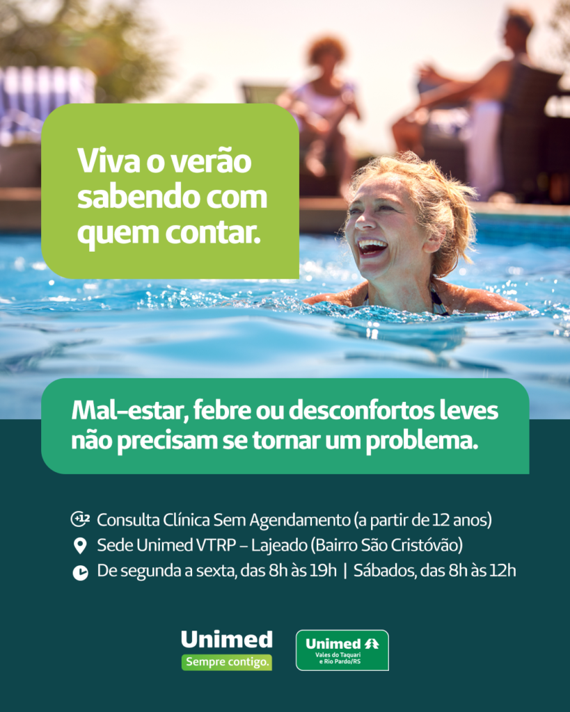 O atendimento é para maiores de 12 anos, realizado na sede da Unimed em Lajeado, sem filas e com estacionamento gratuito.