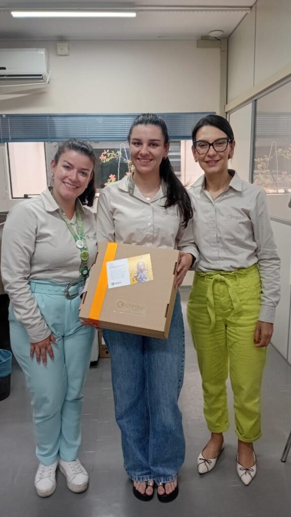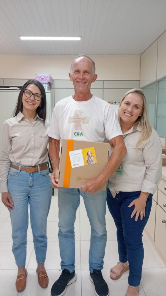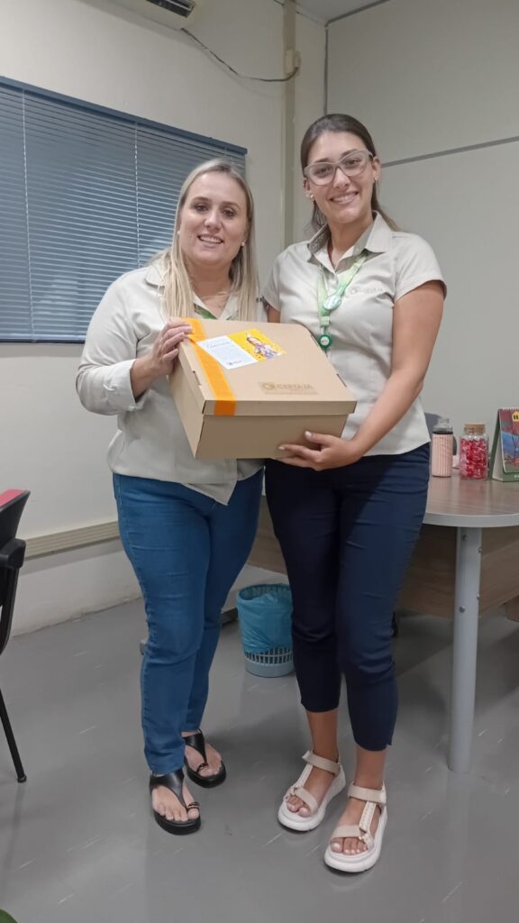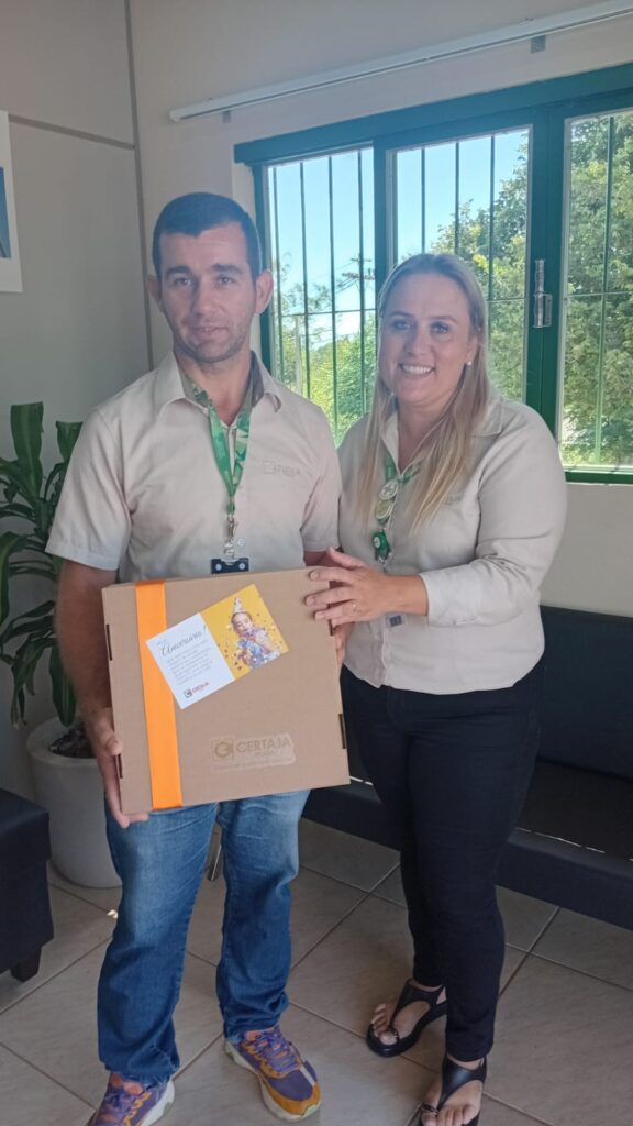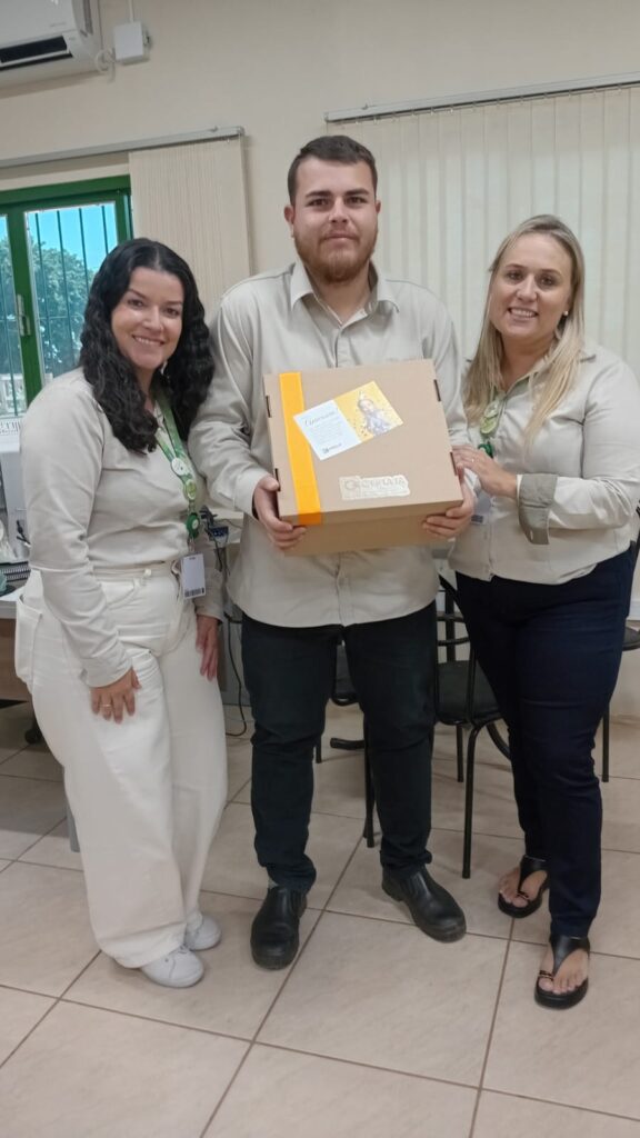 A Cooperativa também realizou a entrega de dois kits em celebração à chegada de Miguel e Pedro, filhos dos colaboradores Bruno de Paula Araújo, do setor de Projetos e Obras, e Stéfani de Oliveira Palagi, do Financeiro.