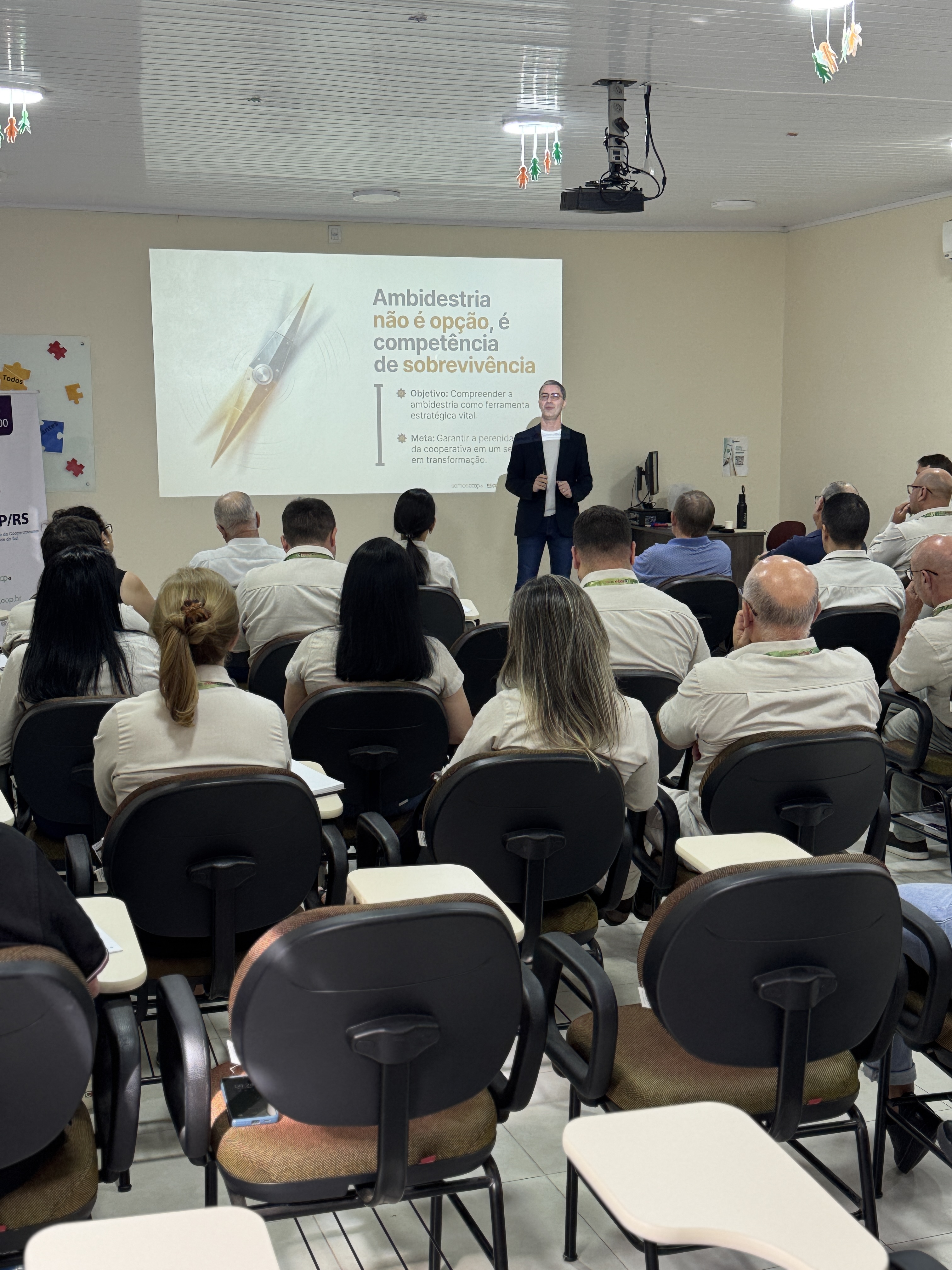A abertura da programação contou com a palestra “Do agora ao amanhã: a arte da ambidestria organizacional”, ministrada pelo professor doutor Daniel Auler, que convidou os participantes a refletirem sobre a importância de equilibrar eficiência no presente e capacidade de adaptação ao futuro, competência essencial para organizações que desejam evoluir de forma sustentável.