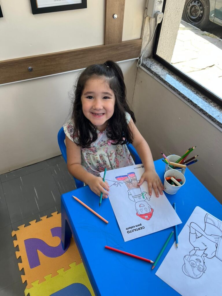 Com um sorrisão que iluminou a recepção da CERTAJA Energia, Isabela, filha da colaboradora Francielle de Oliveira Wasum, se divertiu colorindo o Certajito, nosso mascote, no Espaço Kids. Entre lápis de cor, desenhos e muita alegria, o momento virou um daqueles registros que aquecem o coração e lembram que a Cooperativa também se constrói com afeto, cuidado e espaços onde as famílias se sentem bem-vindas.
