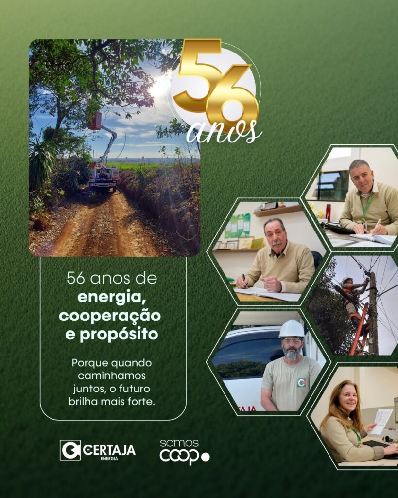 No dia 17 de outubro, a CERTAJA Energia completa 56 anos de atuação. A data também celebra o Dia do Eletricista e homenageia aqueles que são os guardiões da energia, fazendo dela um elo de vida e desenvolvimento.